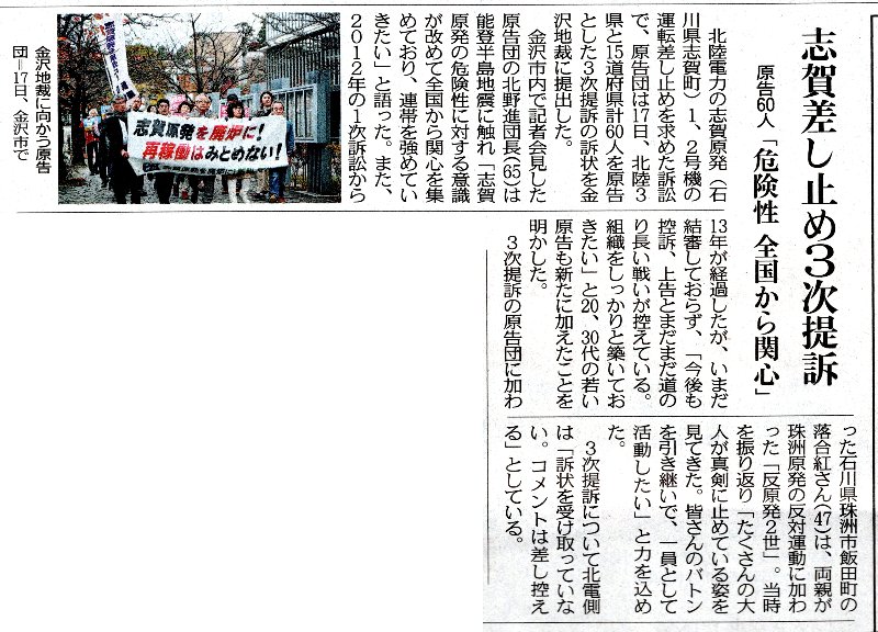 11月17日、私たちの「志賀原発を廃炉に!訴訟」は新たな一歩を踏み出しました。