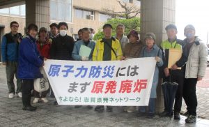 志賀原発1号機稼働以降、私たちは原子力防災訓練に対して毎回監視行動に取り組み、抗議声明などを通じて訓練の課題や問題点を指摘してきた。奇しくも能登半島地震で住民は避難不可能、孤立し被ばくを強いられるという私たちの懸念は実証されることとなった。この間の原子力防災訓練は、大地震が起こり原発震災に至っても住民は無事避難できるという、志賀原発の再稼働を後押しするキャンペーンでしかなかったのである。能登半島地震を教訓とするならば、残された選択肢は志賀原発の廃炉しかない。