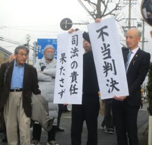 弁護団は「一審判決に対する弁護団声明」を、原告団は「不当判決に対する原告団声明」をそれぞれ発表して、上級審に控訴してたたかう意思を表明しました。