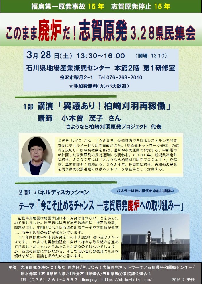 「このまま廃炉だ!志賀原発 3.28県民集会」