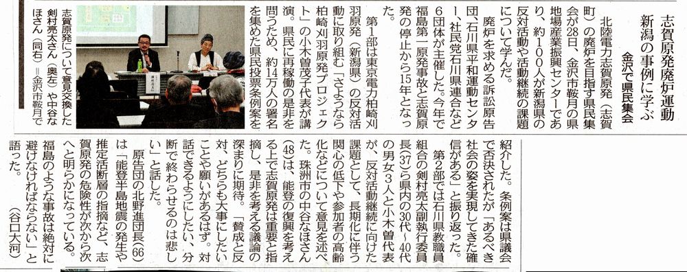 3月28日(土)午後1時半より、石川県地場産業振興センター2階研修室に約110人が集まり、原告団やさよなら志賀原発ネットワーク、県平和運動センターの主催で県民集会が開催されました。